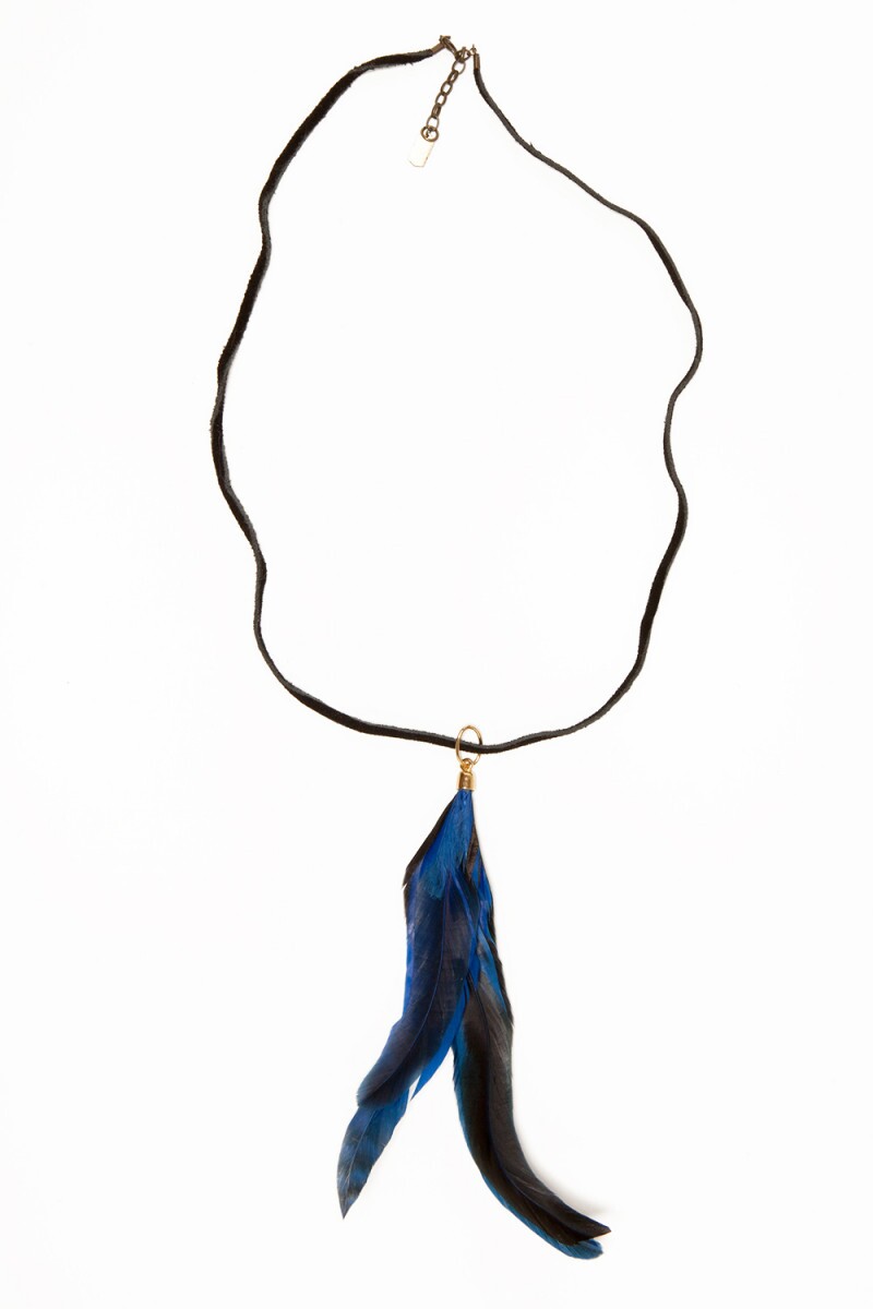 Colar vintage com pingente de penas azuis, de inspiração étnica. O cordão de couro camur&cce..