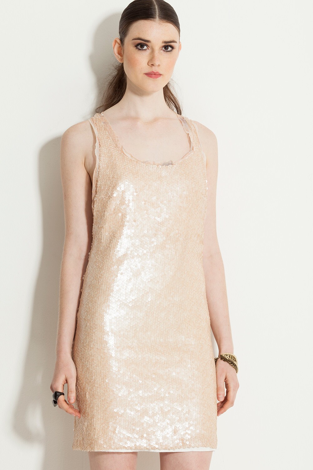 Vestido todo coberto de paetês com decote nadador nas costas. Lindo para vários tipos de festa, da balada ao evento chique. Possui detalhe discreto de tule contornando o decote. Fica lindo em um look todo nude ou em contraste com o pink ou o preto, fazendo a linha moderna rock and roll. Para arrasar! Tam. aproximado: 40 Tam. na etiqueta: M Busto: 88 cm (medida da circunf. sem esticar) Cintura: 78 cm (medida da circunf. sem esticar) Quadris: 84 cm (medida da circunf. sem esticar) Comp.: 89 cm (medido do ombro até a barra) Obs.: o tecido estica Marca na etiqueta: Les Parents Cor: nude ou salmão bem clarinho Material: paetês; 100% poliéster; forro 100% poliéster Condição: novo, em perfeito estado